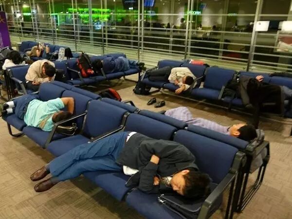 火车站里软席候车室,熟睡的人群。