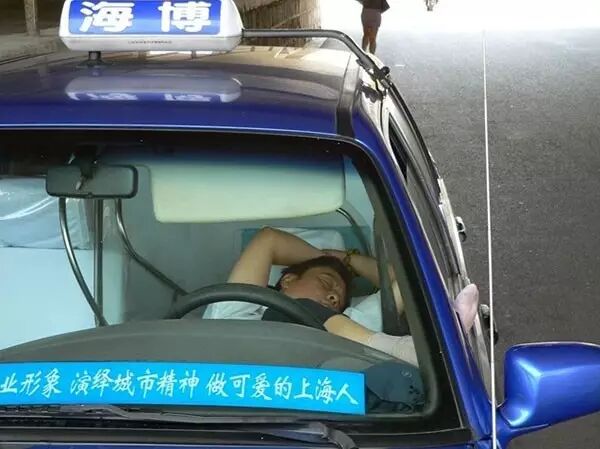 出租车司机在自己车里安然入睡。