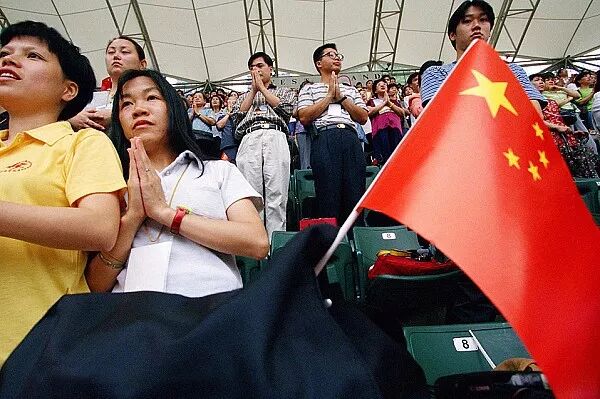 1997年7月1日,香港回归中国第一天,该地区佛教徒举办历史上规模最大的一次聚会,4万余人祈祷风调雨顺,国泰民安。贺延光/摄。