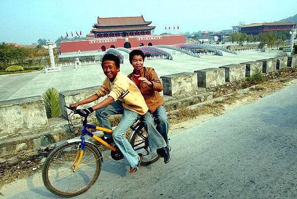 2004年1月2日,福建厦门同安县,两位放学少年正经过“天安门”。贺延光/摄。