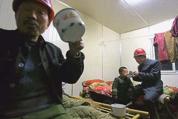 2000年12月1日,内蒙古大雁煤矿井下发生矿难,几位矿工在焦急地等待救援消息。贺延光/摄。