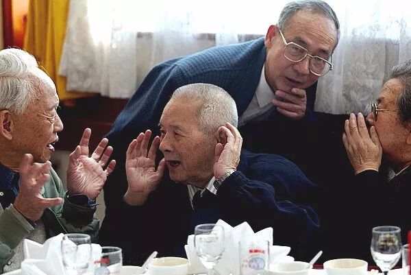 2003年1月17日,新春聚会中的胡绩伟(左二)见到亲朋老友格外兴奋。贺延光/摄。