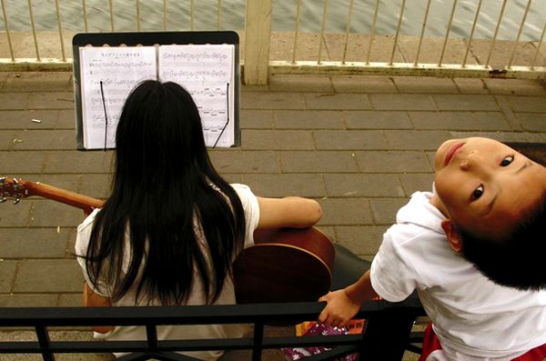 2009年5月9日,北京什刹海,玩音乐。贺延光/摄。