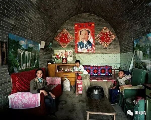 2008年5月1日,山西省霍州市李曹镇王家岭村,一户靠崖式窑洞里的一家人,窑龄30多年。胡力/摄。