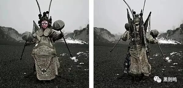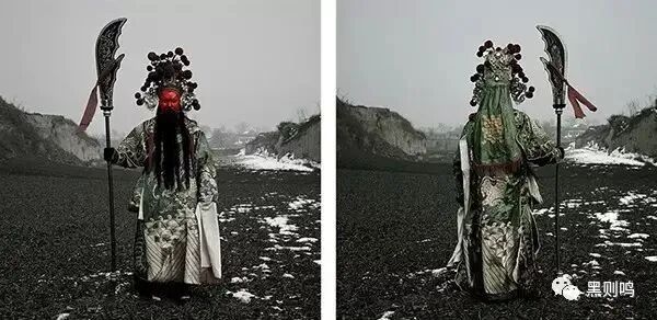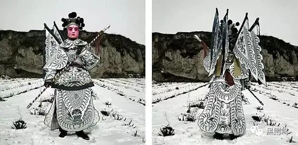 用最直接、最直白方式让社火人物矗立于户外环境之下一反一正,拍摄他们的静态肖像。