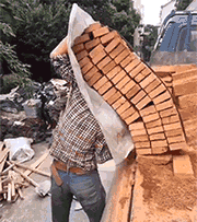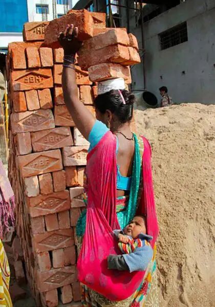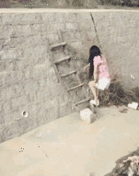 一个身材弱小的农村妇女背起一个大自己数倍水泥搅拌罐只为了几十块钱的工钱。