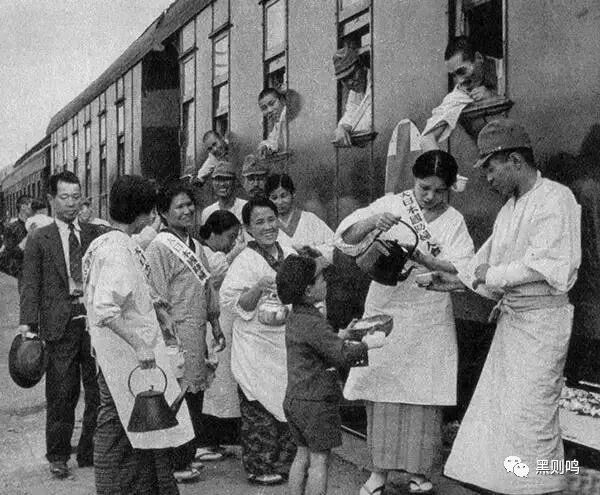 1938年4月21日,胶济铁路张店站,为日军送行的日本国防妇人会侨民。