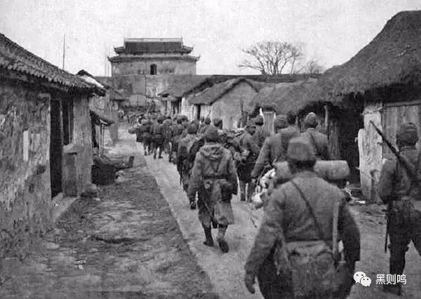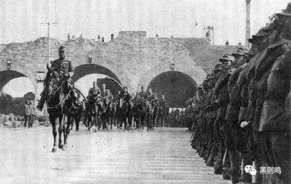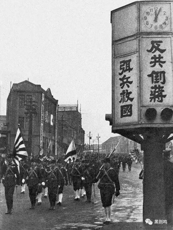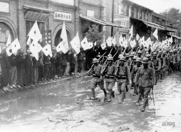 1939年,江苏,列队进入海州(连云港古称"海州")城的日军。
