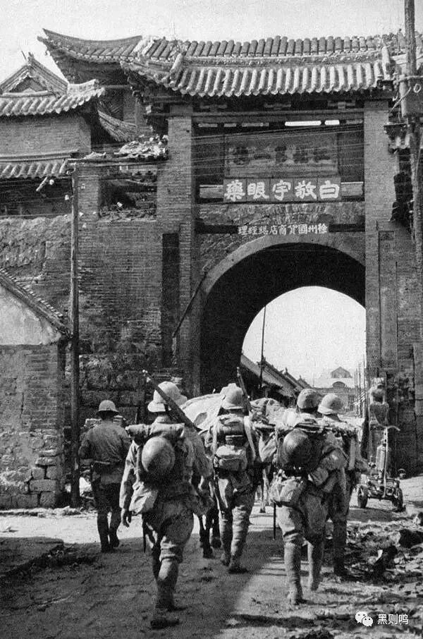 1938年5月19日,徐州江北第一楼,入城的日军部队。