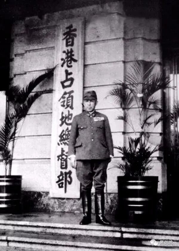 日占时期,"香港占领地总督部"门前,香港总督矶谷廉介。照片大约拍摄于1941-1945年之间。