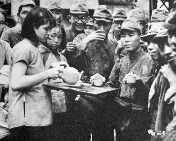 福州,中国姑娘给日军倒茶,日军想表现"日中亲善",但姑娘不情愿的表情让这种"亲善"感觉全没了。