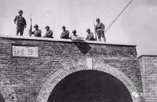 抗战时期,安徽省安庆城门外,鬼子站岗。