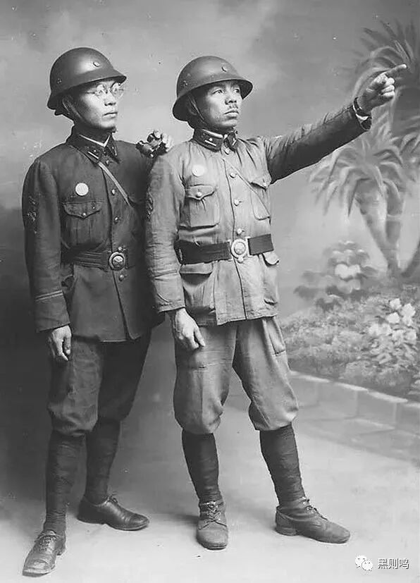 抗战时期,日本士兵摆拍照。这张照片像是在照相馆内摆拍,拍摄者一般都是战地随军记者,拍这种照片一般都是为了做宣传显示"皇军威武"。