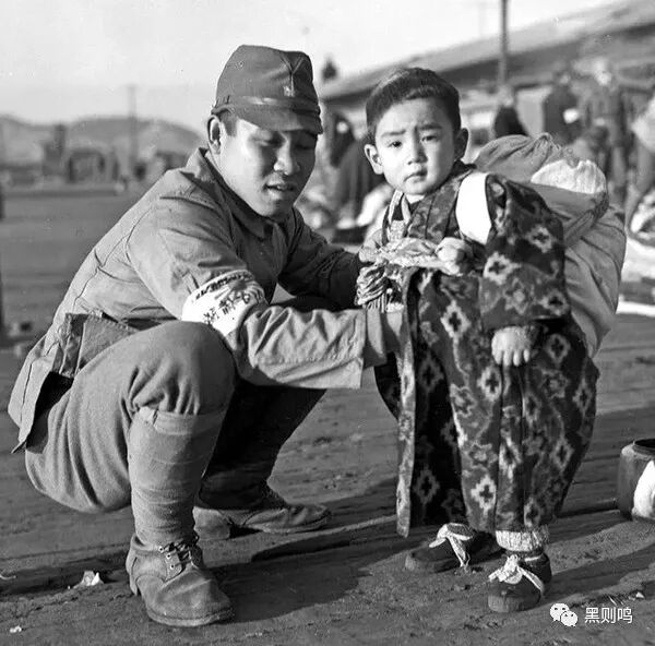 1945年战争结束后,一名日本士兵回到日本见到了自己的儿子。
