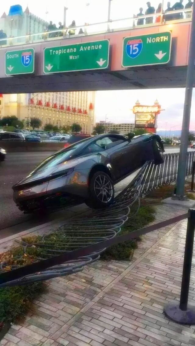 像是汽车穿越时空,其实是车祸现场留下的保险杠。