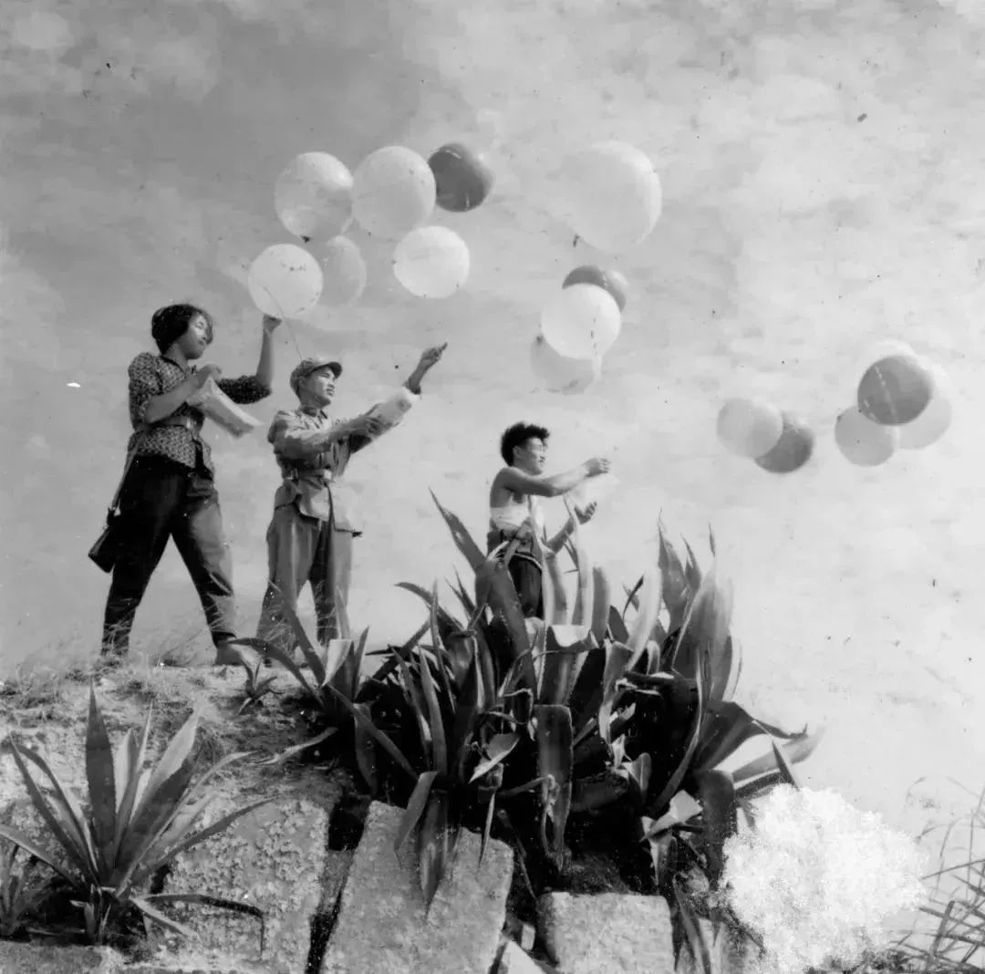 1965年,福建前线,军民向敌岛发送宣传品。王玉崑/摄。
