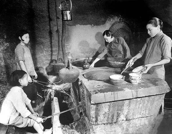 1941年,简阳县龙泉驿(1960年成为成都龙泉驿区),妇女在厨房做饭。卡尔·迈登斯/摄。