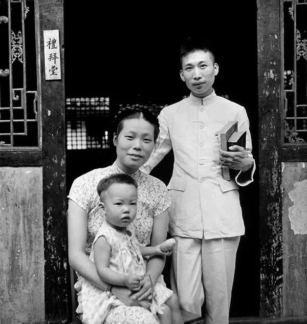 1941年,简阳县龙泉驿(1960年成为成都龙泉驿区),某户一家三口。卡尔·迈登斯/摄。