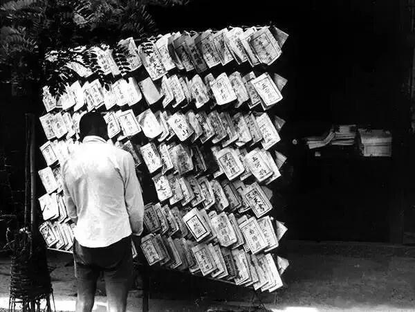 1941年,简阳县龙泉驿(1960年成为成都龙泉驿区),一位顾客在流动书摊前浏览。卡尔·迈登斯/摄。![]()