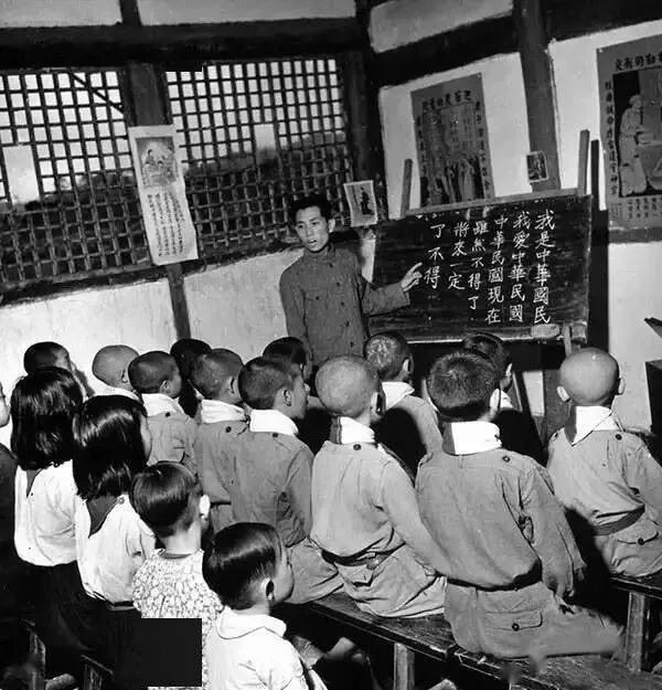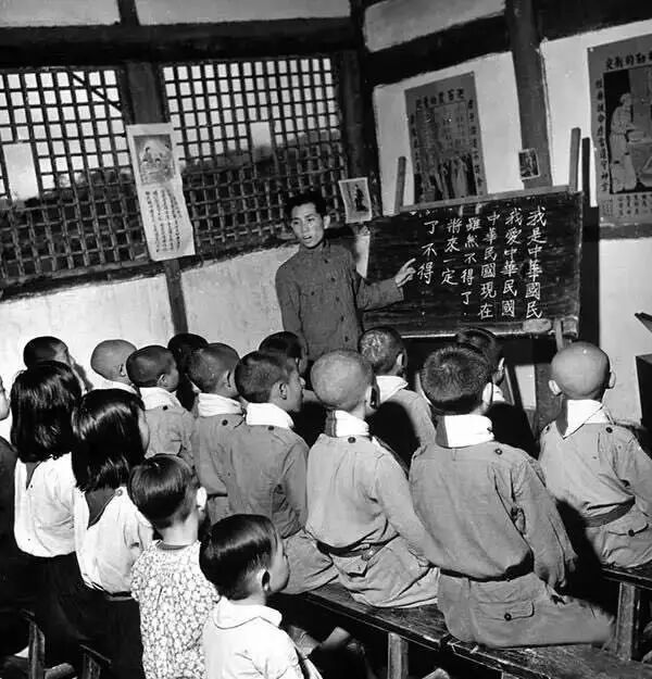 1941年,简阳县龙泉驿(1960年成为成都龙泉驿区),小学儿童在上课。卡尔·迈登斯/摄。