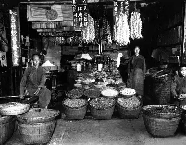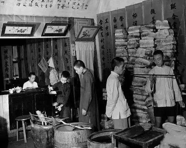 1941年,简阳县龙泉驿(1960年成为成都龙泉驿区),中药铺。卡尔·迈登斯/摄。