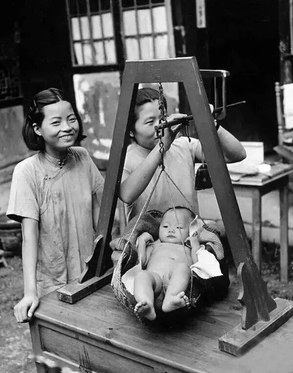 1941年,简阳县龙泉驿(1960年成为成都龙泉驿区),诊所给婴儿称重。卡尔·迈登斯/摄。