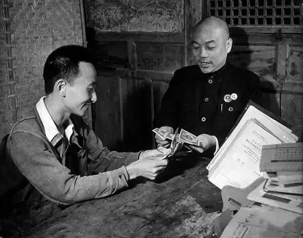 1941年,简阳县龙泉驿(1960年成为成都龙泉驿区),农村信用合作社官员为客户办理业务。卡尔·迈登斯/摄。