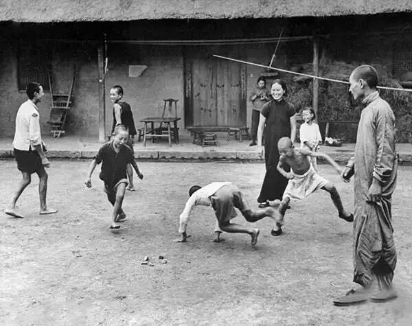 1941年,简阳县龙泉驿(1960年成为成都龙泉驿区),庭院游戏。卡尔·迈登斯/摄。