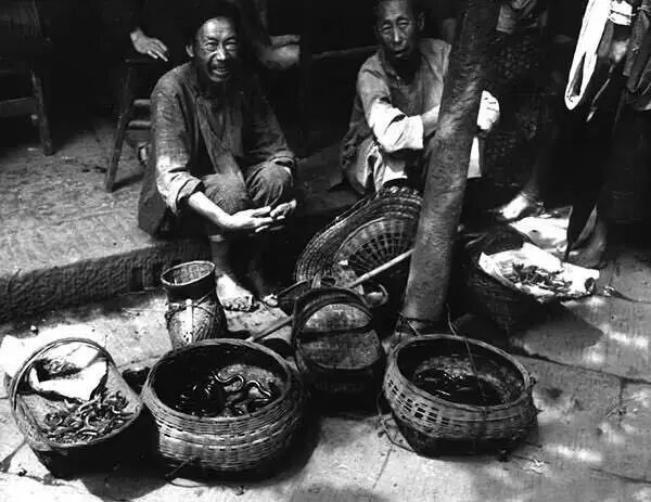 1941年,简阳县龙泉驿(1960年成为成都龙泉驿区),鳝鱼摊贩。卡尔·迈登斯/摄。