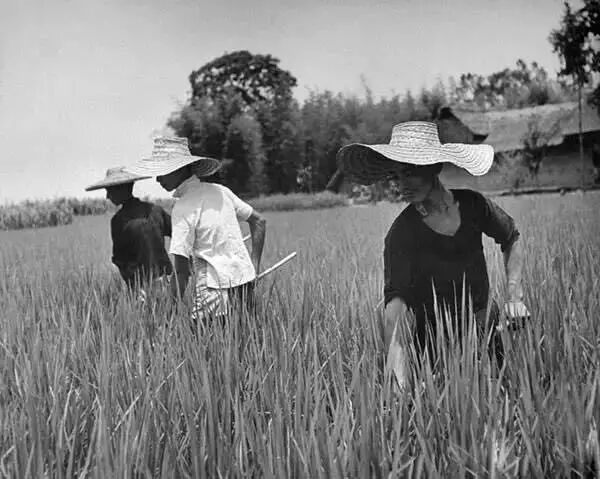 1941年,简阳县龙泉驿(1960年成为成都龙泉驿区),锄草的农民。卡尔·迈登斯/摄。