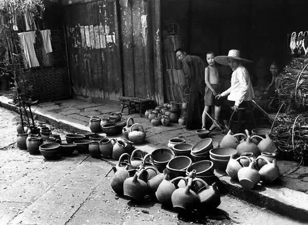 1941年,简阳县龙泉驿(1960年成为成都龙泉驿区),陶罐商铺。卡尔·迈登斯/摄。![]()