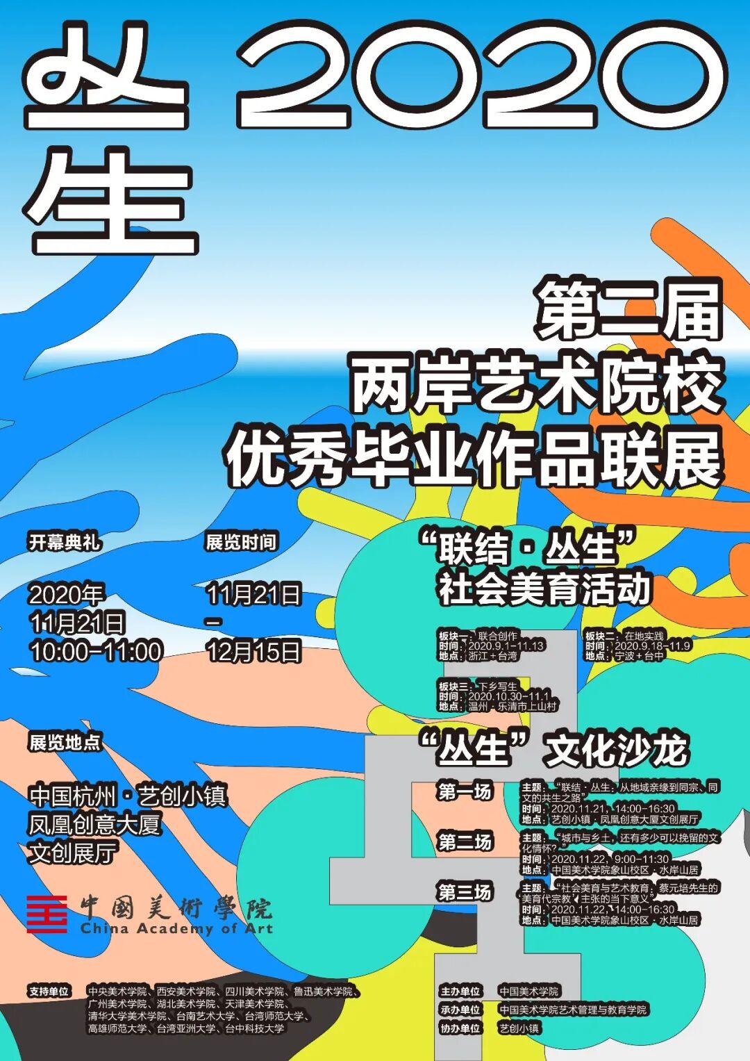 “丛生”以海峡两岸同宗同文、同根同源的地域亲缘为基石,以对共有之中华文化的自信和坚守为立场,以艺术教育的最高品质和最新成果为依托,在2019年——2021年间,联合两岸多所艺术院校,联动两岸作家、学者、社区实践者、在浙台生以及在浙台商及其家属,通过多元形态的艺术展示、多重视角的对话交流,打造两岸文化艺术融合发展的重要平台。