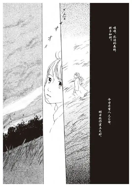 在《海与温柔眼神》中,故事发生的舞台大部分和《蟲师》与《水域》相似,都是野山、寒村、小渔村、水边等。不难发现,比起都市,漆原友纪本人更喜欢与旷远乡村有关的意象。