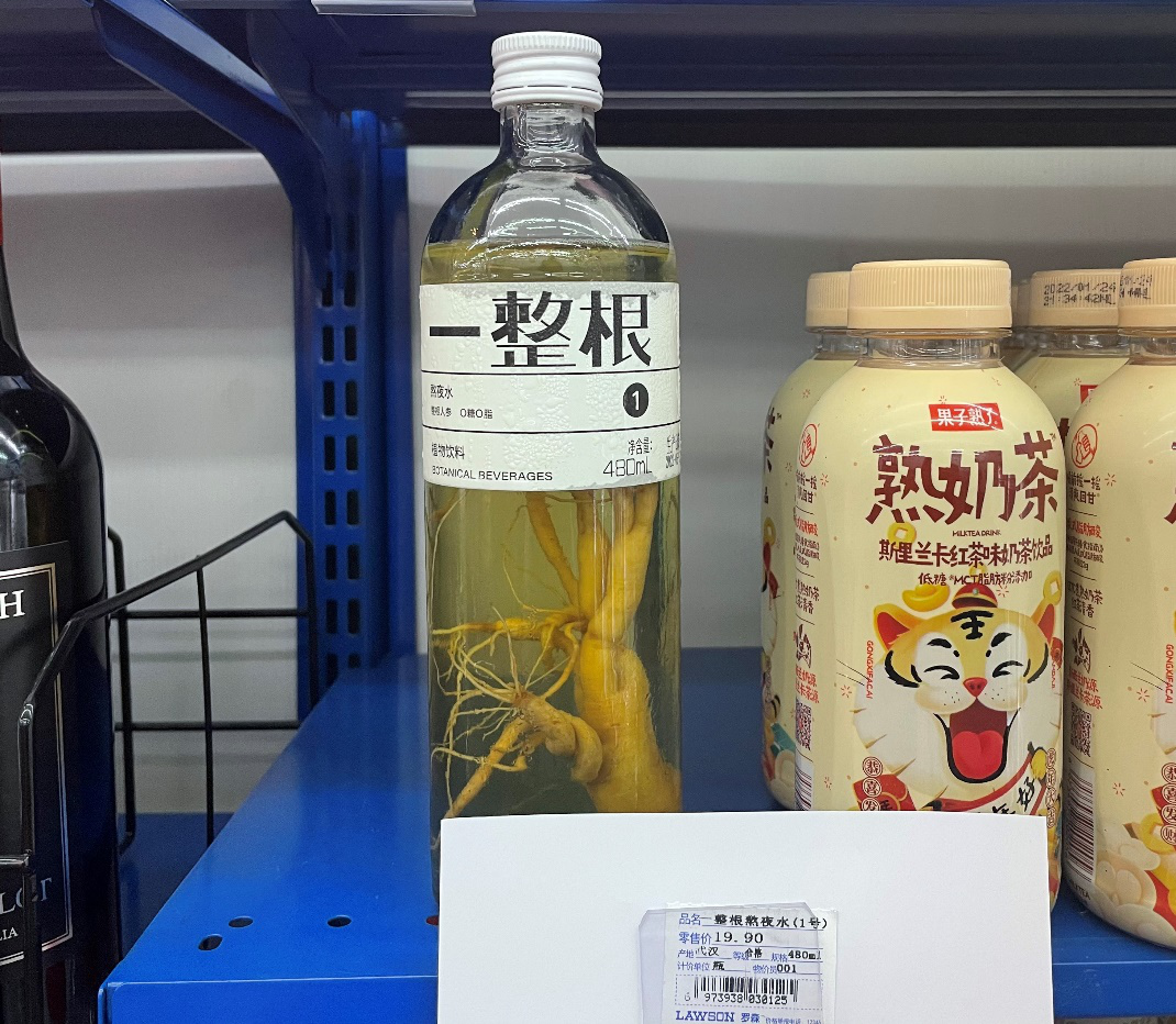 因为添加一整根人参,外观看起来尤为新奇,再加上地区限定,因此这款水很快就走红于网络。锌刻度在探访到第四家门店时才找到了该店仅剩的最后一瓶,不过瓶身上的贴纸由于被水浸泡,已经开始发泡,卖相已经不太好。