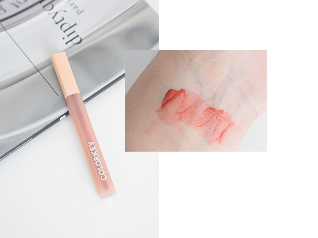 想了想就决定用Colorkey的这支水雾唇釉#P307,看着像是粉色与杏色的结合,比较微妙,但有一说一,这颜色真的很“女团”,无敌显白!