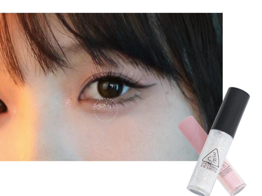 因为女团给人的感觉就是一种甜系活力感,所以我们的眼妆部分可以呈现的相对清透粉嫩一点,这里用到的是3CE的烟粉盘。
