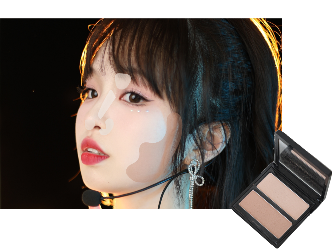 修的时候我们可以把面部突起的部分看作是山峦叠嶂,不一样的山峰高度会呈现出深浅不一的阴影,所以用双色修容会相对比较合理,浅色修鼻影,深色混浅色修侧影。