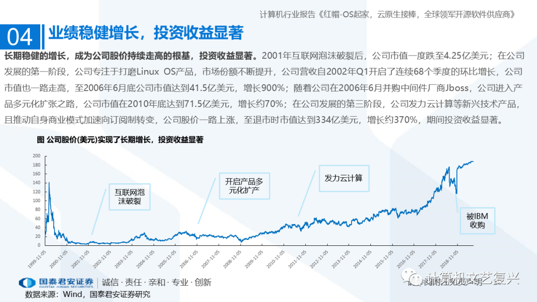 合规声明:本文节选自国泰君安正式研究报告《红帽-OS起家,云原生接棒,全球领军开源软件供应商》,如需报告原文PDF请后台留言。