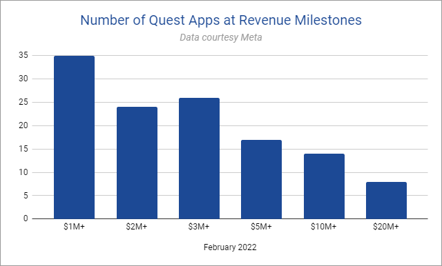 更为关键的是,Pico生态缺乏足以压阵的顶流内容。截止到2022年2月,已有124个App在Quest平台上获得了100万美元以上的收入,有8个App的收入甚至超过了2000万美元。