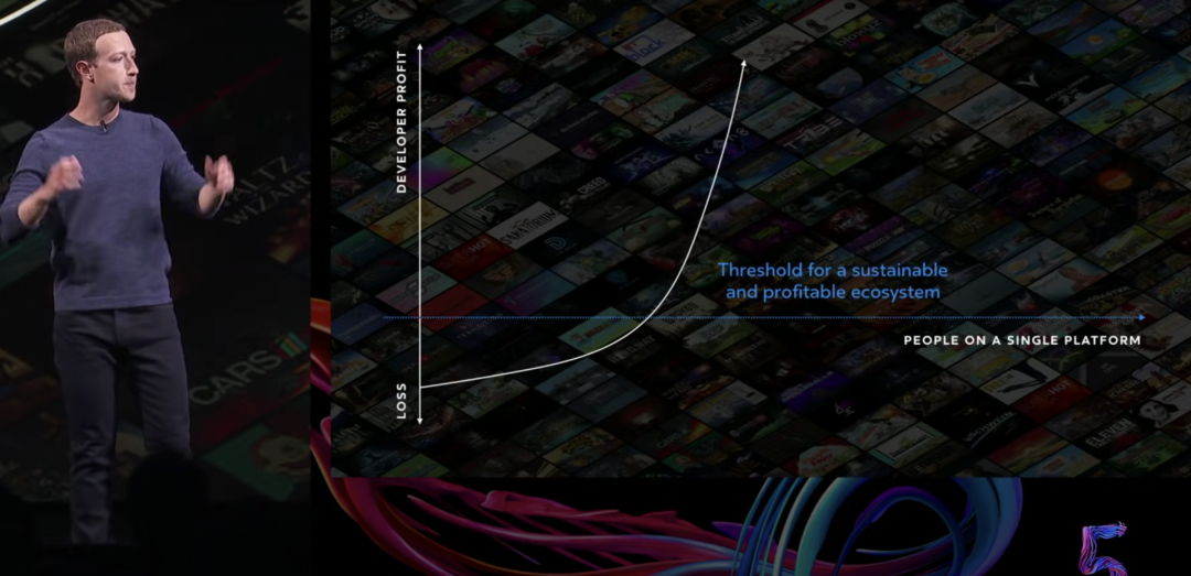 对于一个还不够成熟的生态而言,Quest的高市场份额很大程度上有赖于以补贴拉动销量的策略。在2018年的Oculus Connect大会上,Meta CEO扎克伯格曾公开表示过,当各个平台吸引1000万用户时,VR内容生态会爆炸性增长。