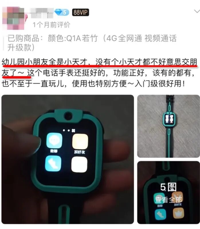 尽管小天才与不同品牌的儿童手表同样可以留下联系方式和通话交友,但它还是掐准了孩子怕被孤立和好玩的心理。在小天才买家秀里,“碰一碰”还是成了显著购买理由。有父母分享道:“娃为了跟同学碰一碰交友,吵着买小天才”,“同学基本都是小天才,孩子圈需要,没必要另类”……
