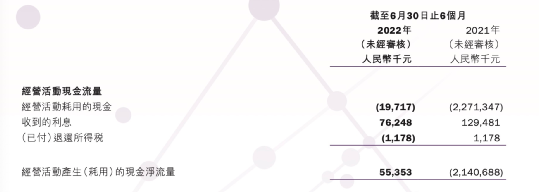 根据国美9月27日公布的2022年中报显示,公司负债正乌云压顶。目前国美的总负债规模达到了585.67亿元,其中需在1年内偿还的银行借款和其他借款有229.02亿元。而目前公司的现金及现金等价物仅为24.09亿元,同期经营活动现金流更只余5535万元,比照2021年的21.4亿元现金流呈现断崖式下跌。