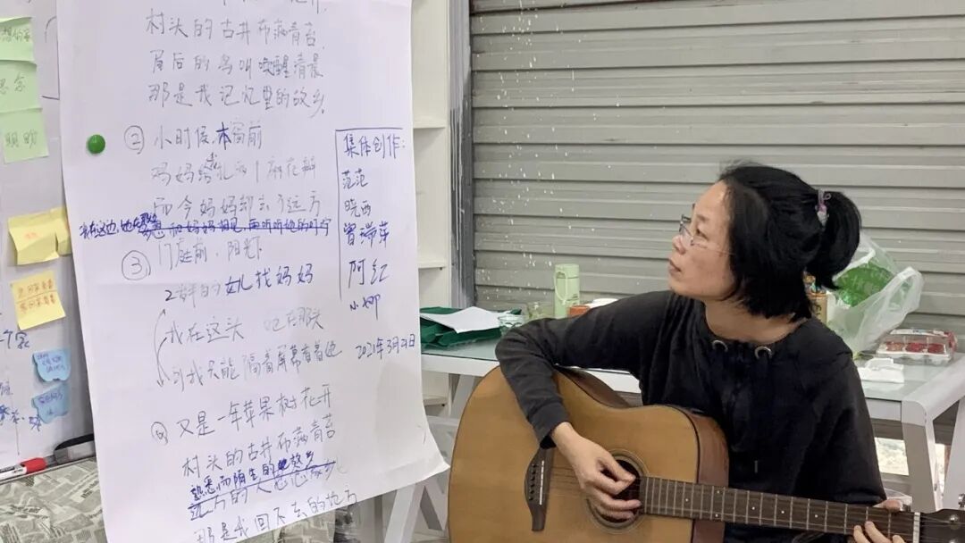 而在活动结束前,大家也约定参加下一次的音乐工作坊,将歌词不断打磨完善并谱曲弹唱,尝试创作更多属于女工自己的歌曲,唱出大“家”的故事。