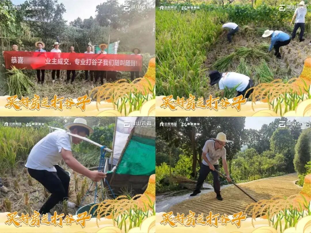 “除销售人员外,其余3位都有3年以上务农经验,在没从事地产行业之前都务过农,所以对打谷子这件事也很熟悉,”在帮忙打谷子的同时介绍了项目情况,无意中达成成交。据其透露,“目前活动还在持续,如果客户需要,我们都会尽力满足,之前还做过帮业主晒豇豆收豇豆、布置结婚现场等方面的事情。”