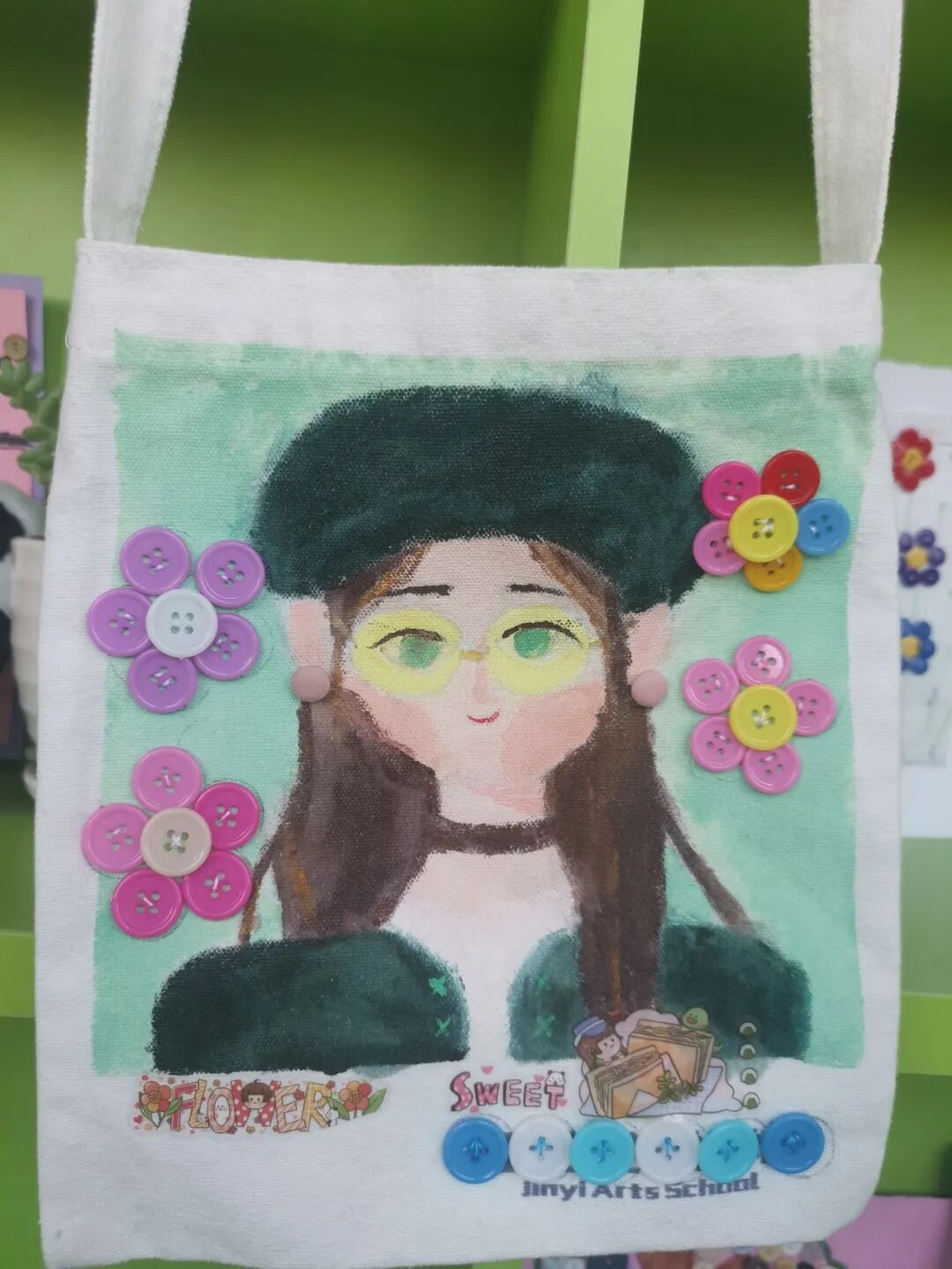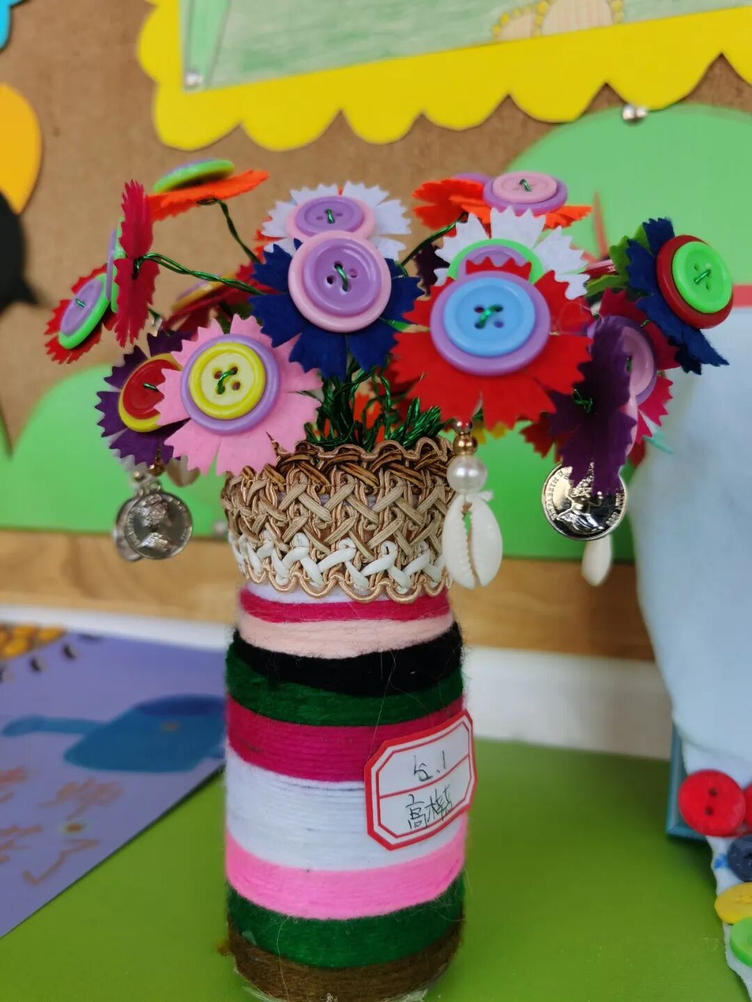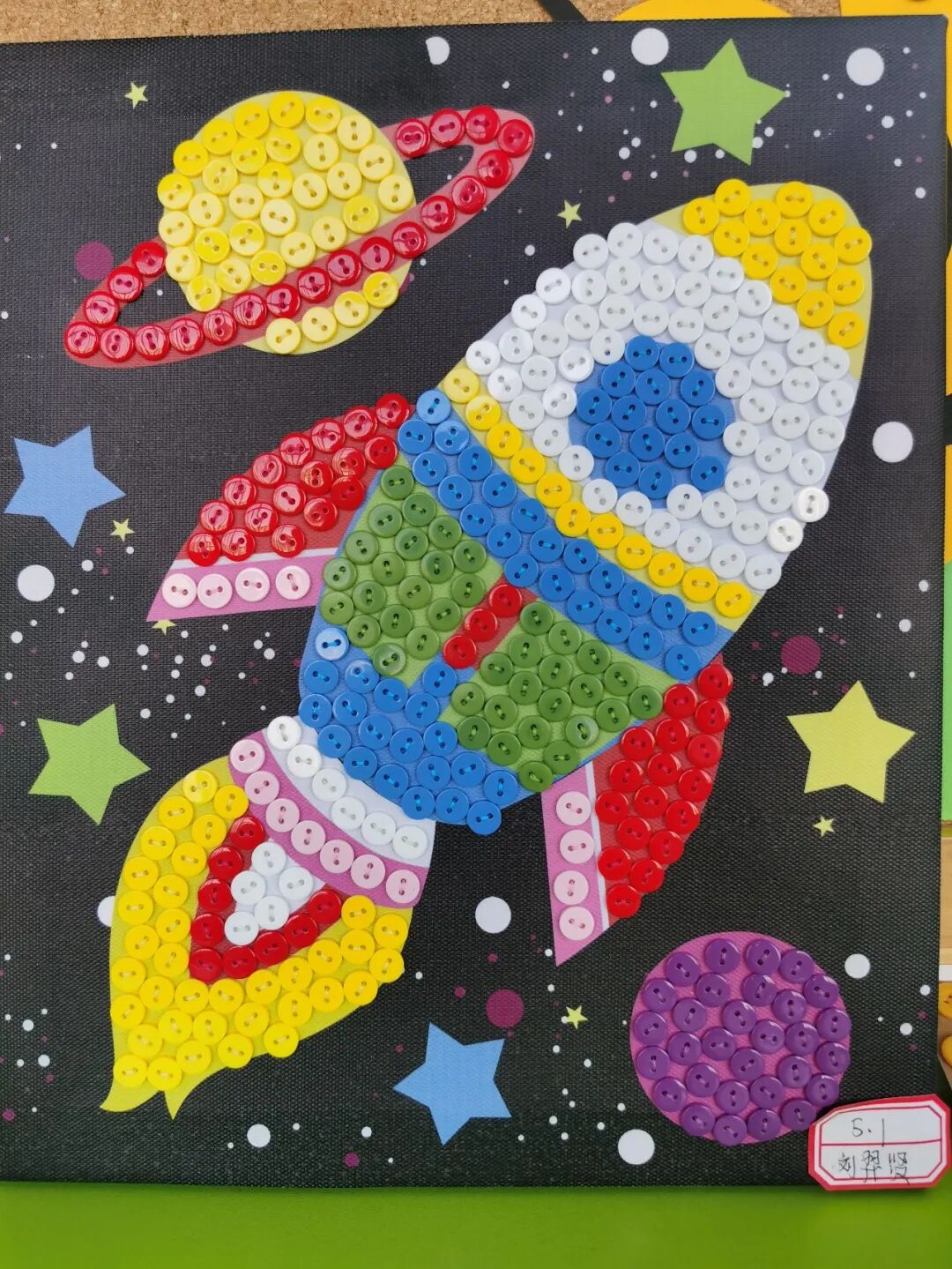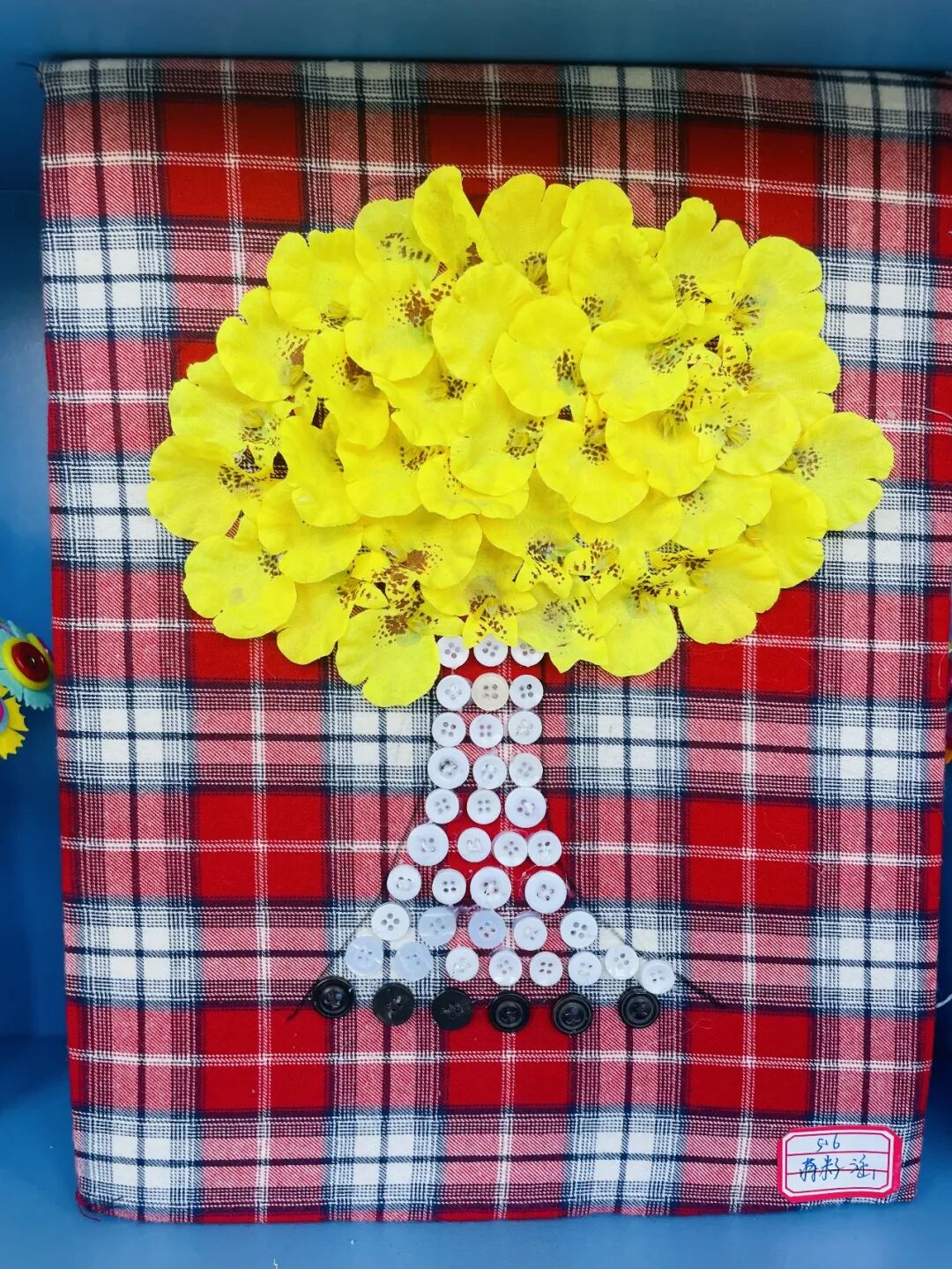 五年级的创意是“缝制纽扣画”,谁能想到咱们胸前的纽扣还有这样绚丽多彩的时刻呢?孩子们用巧手将大大小小、各色各样的纽扣拼接到一起,铸就了一幅幅精致漂亮的纽扣画。好画渐入迷人眼,待我们慢慢赏来……