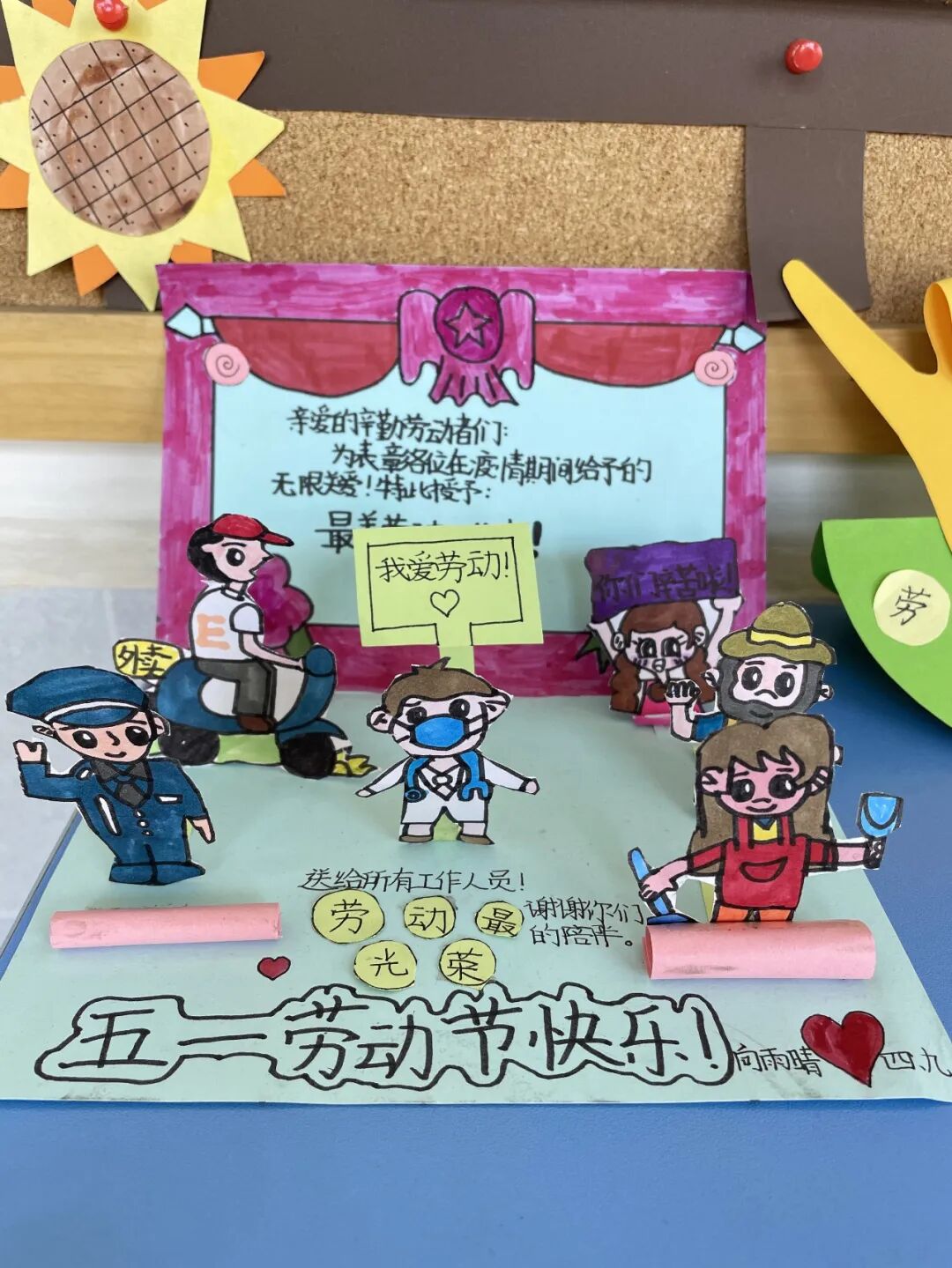 四年级的排场可一点儿也不小呢!精心制作的劳动贺卡一张张都涵盖着学生们的匠心创意。贺卡虽小,心意不小,劳动节即将来临,这一张张写满心意的贺卡充溢这我们对劳动者的崇高敬意,饱含着我们对平凡事业坚守者的真诚祝福!