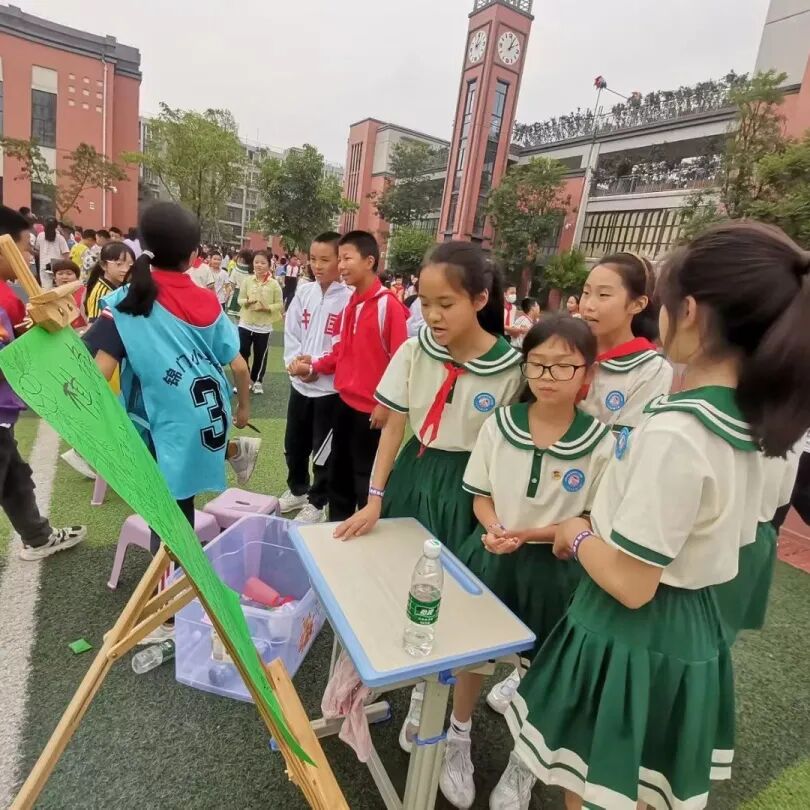 家长志愿者的忙碌身影;