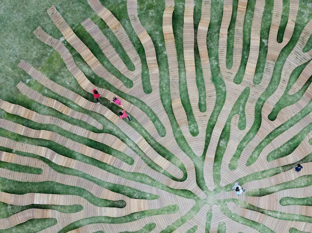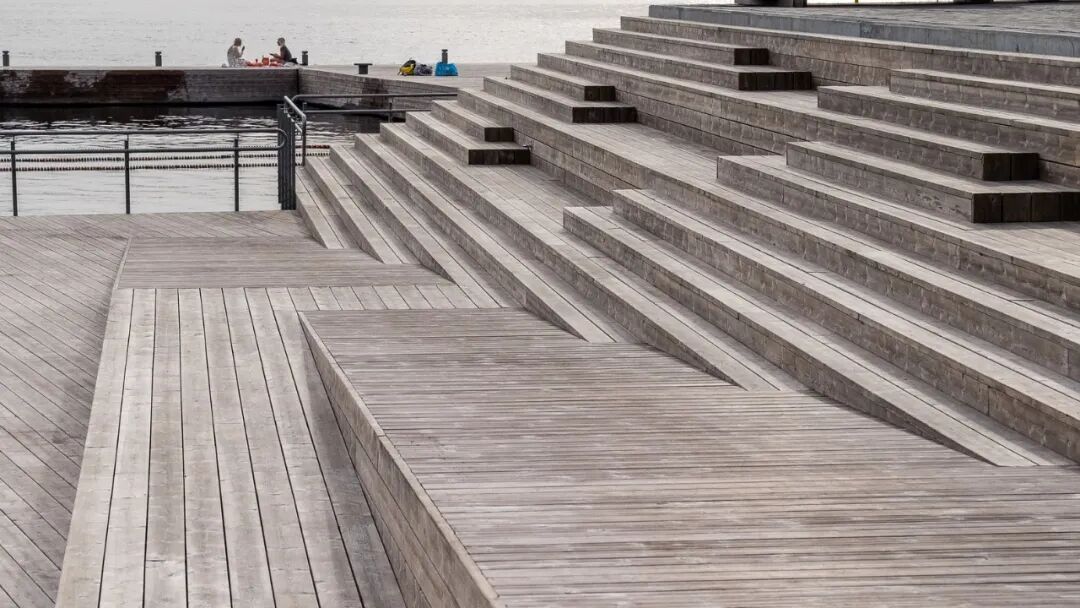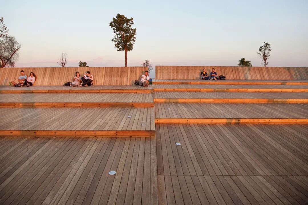在使用天然木材时,所有木材构件都需要上漆,以抵御雨水、阳光、昆虫和频繁的使用。此外,如果将结构抬高到地面上方,则可以在下方放置砾石以改善排水,或使用除草剂来防止杂草生长。以下,我们来回顾一系列在公共空间中使用了木制板而实现不同功能和美学目标的项目。