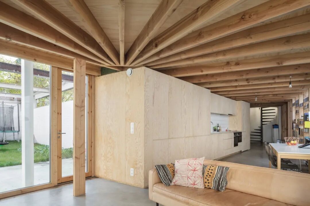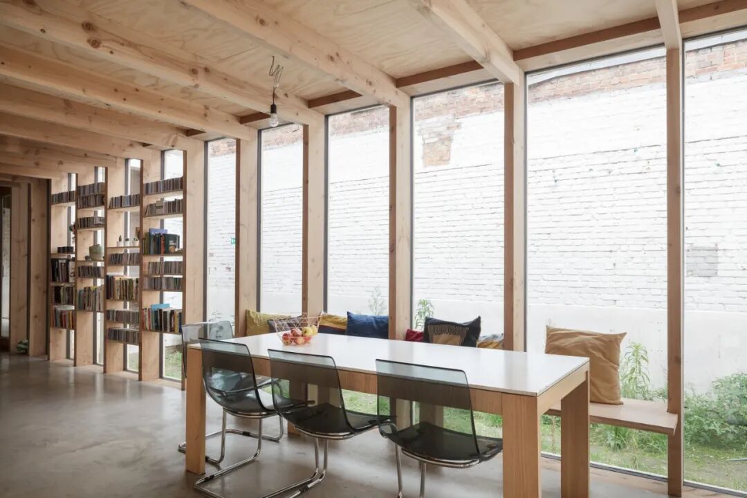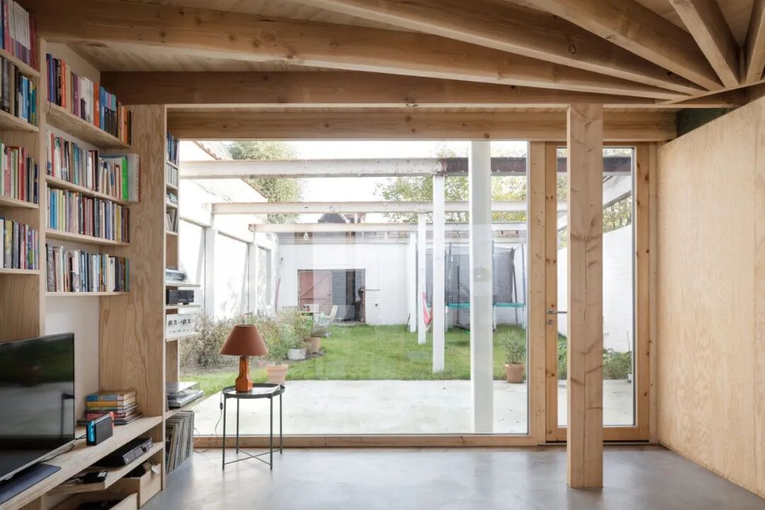 建筑师利用一个全新的木构架整合了既有的内部空间,并保证了内外空间的联通关系。这样一来,整个私宅空间都得到了很好的梳理,同时又使得既有的裸砖可以在空间内部被看到。