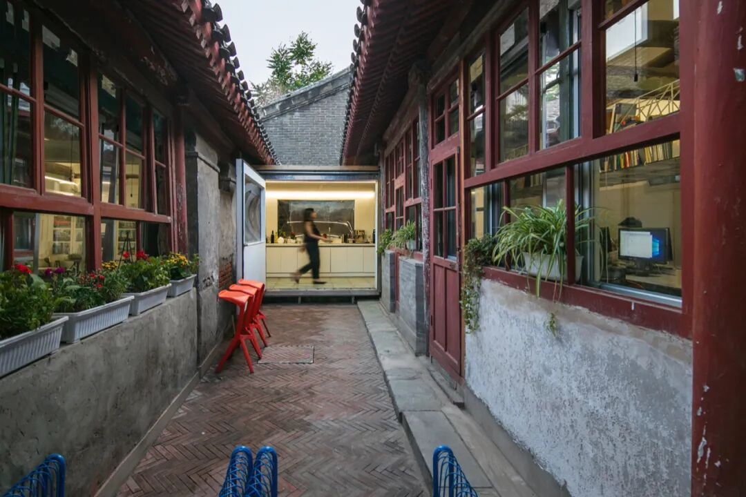 众建筑:我们和邻居孙师傅生活在一个院子里,为了不影响他的生活,我们一年有一段时间在20:30之前必须下班,超时会罚款,以避免影响邻居的生活。我们有做饭的阿姨,所有人每天中午会围坐在一起吃饭,这对我们大家来说都是很好的交流时间。吃完饭大部分人会去串胡同。